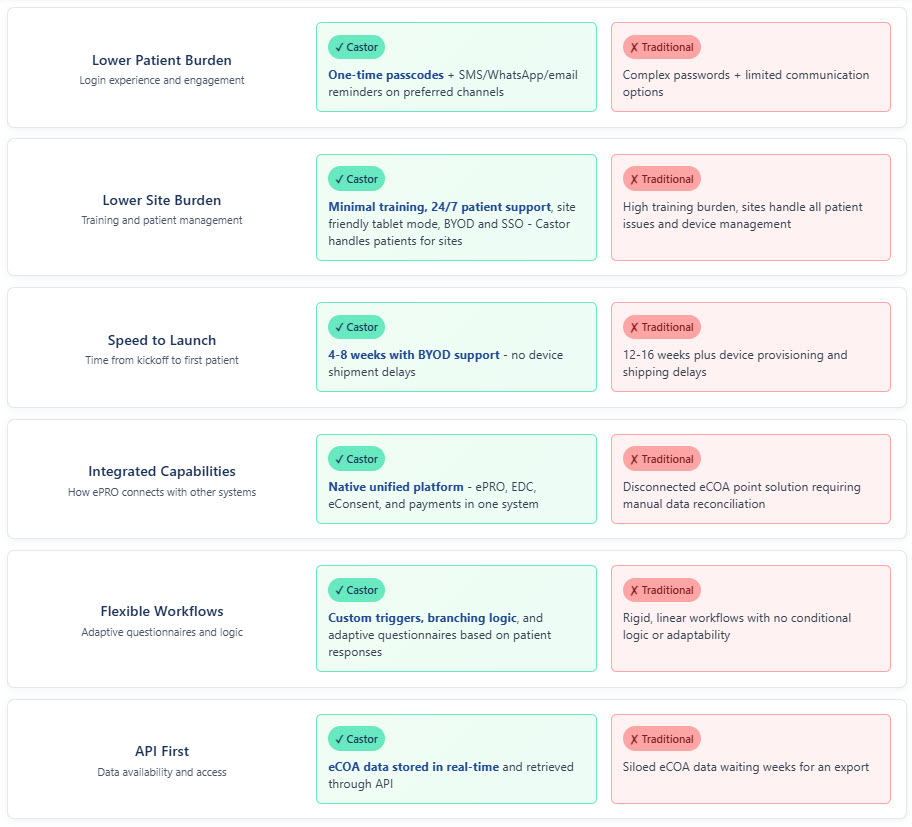 Not all ePRO solutions are equal. Traditional clinical outcome assessment systems burden sites and frustrate patients.
