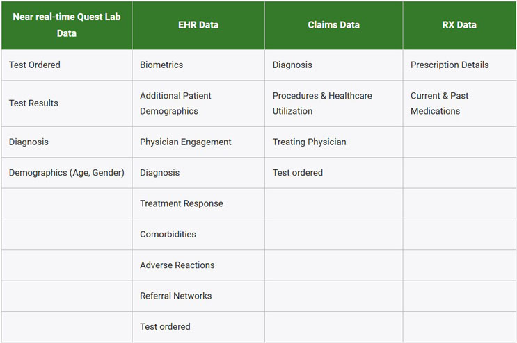 Timely physician engagement is critical to therapy adoption. Quest Diagnostics combines near real-time lab data with other data sources including EHR, claims and prescription data to help pharmaceutical teams identify and connect with physicians managing eligible patients at key decision time point in the patient journey.