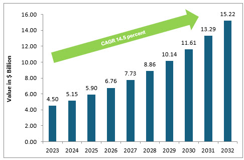 The broader pharmaceutical cloud computing market was valued at $4.5 billion in 2023 and is forecast to grow to $15.2 billion by 2032, at a CAGR of ~14.5%.4