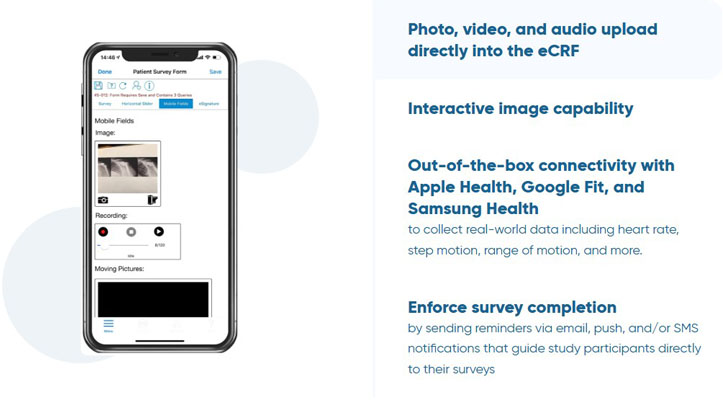 - Offers a mobile-friendly interface that empowers patients to report outcomes on their own schedule and device